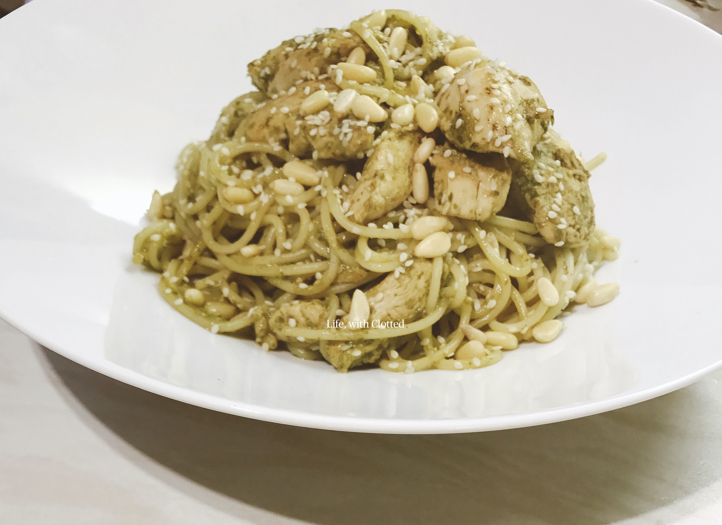 Category: Food Category, Global Cuisine, Italian, Meat, Pasta, RecipesTags: Chicken, midweek, pesto, pine nuts, sesame seeds, Spaghetti