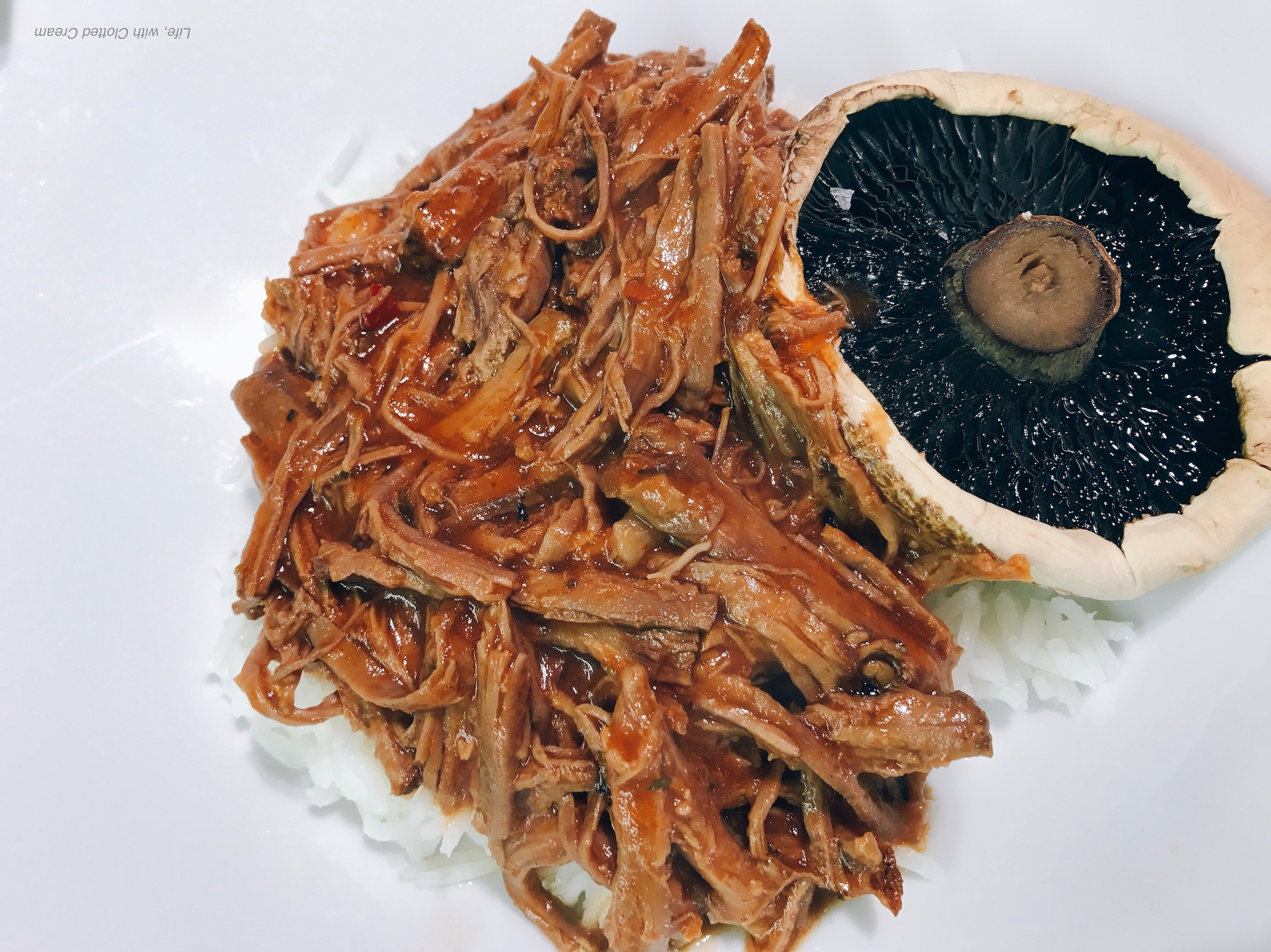 - Using two forks, gently pull the meat apart and pour the passata over the top along with seasonings and the thyme. Leave on the ‘keep warm’ function until you are ready to eat (I leave mine at least an hour to let the flavours infuse).