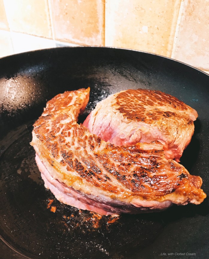 - Now season the meat with salt, pepper and thyme leaves. Leave for about 20 minutes to ½ hour on low for the seasoning to permeate the dish and allow you to finish off the side dishes (I love slow roasted vegetables, roasted garlic flat mushrooms and a little rice) and pour a generous glass of wine.