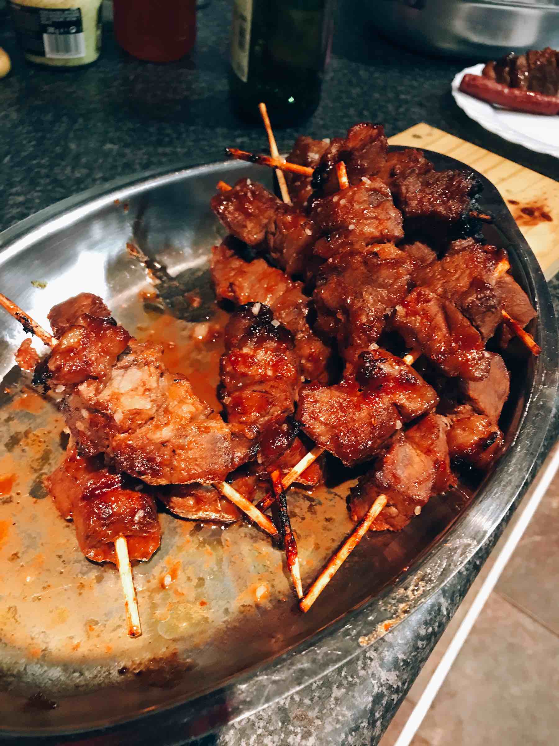 Pictured below is Gemsbok (type of Venison) sosaties, beef boerewors sausage, smoked impala (type of Venison) cheese grillers, pork ribs, lamb chops, Russian (spiced pork) sausages, cheese platter with my mum’s homemade watermelon preserve and vegetable crudités with homemade tzatziki. Of course we had to have homemade biscuits for desert!